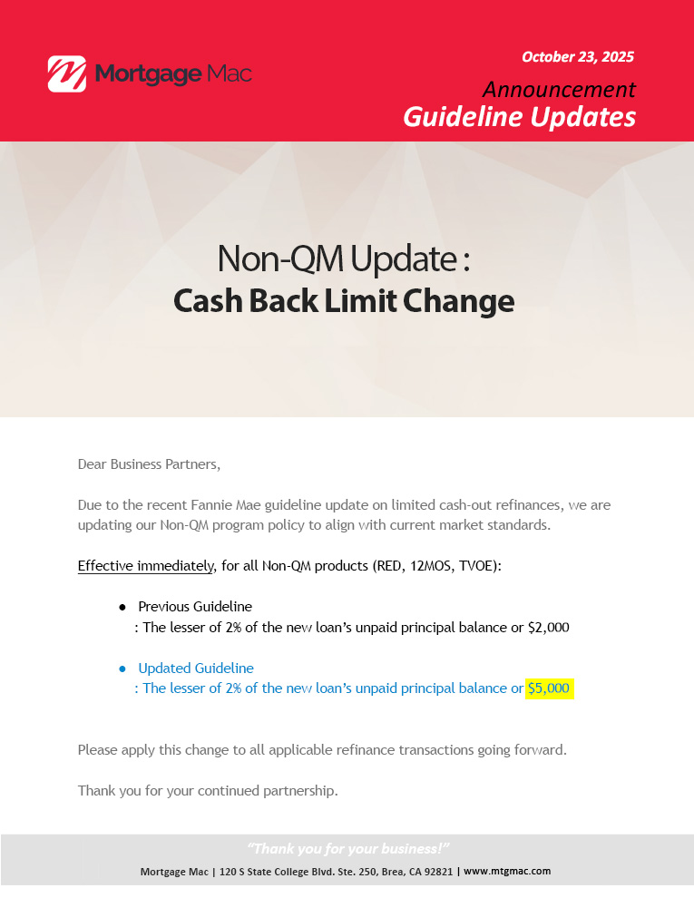 Non-QM: Cash Back Limit Change