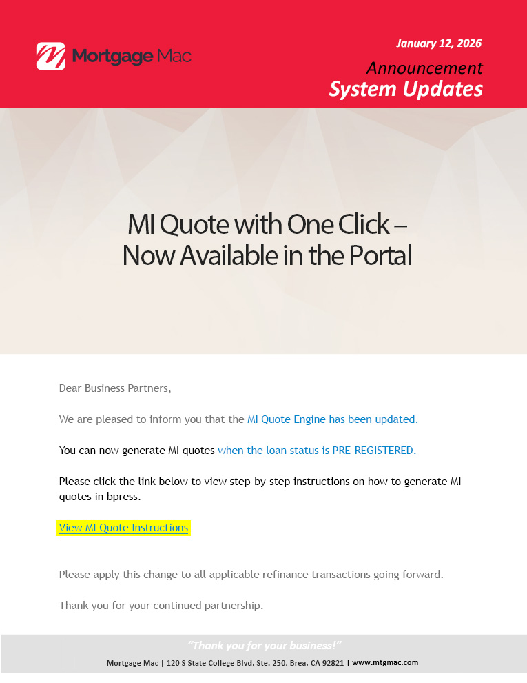 MI Quote – Now Available in the Portal