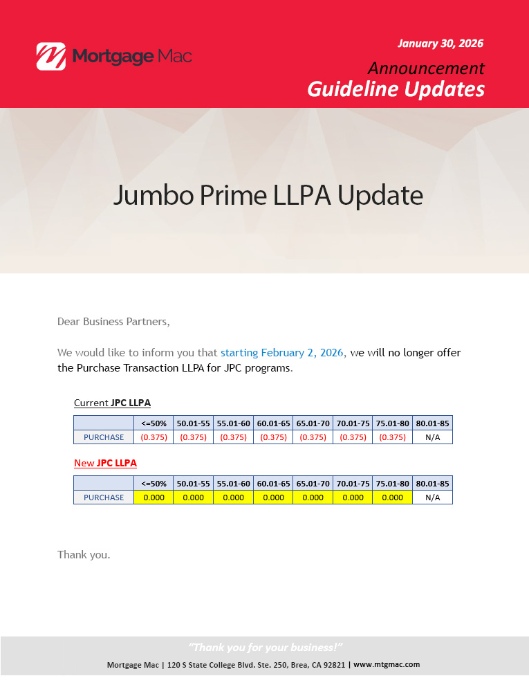 Jumbo Prime LLPA Updates