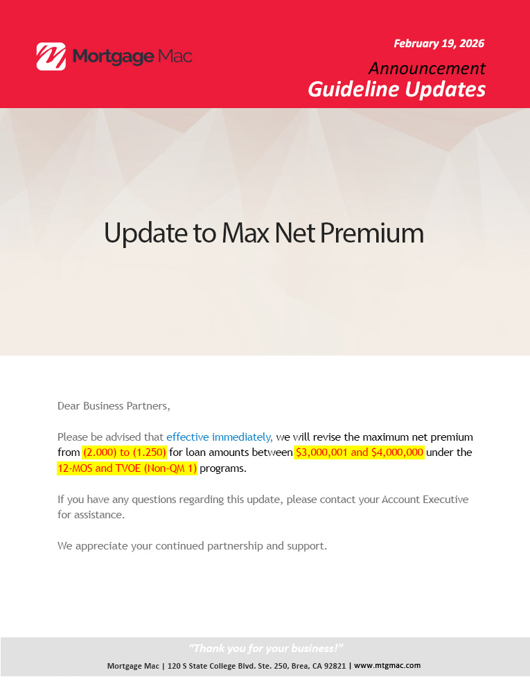 Update to Max Net Premium
