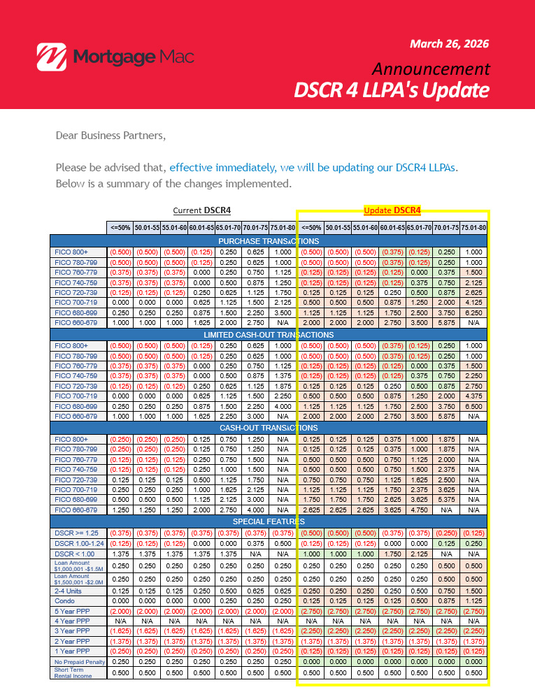 DSCR 4 LLPA's Update
